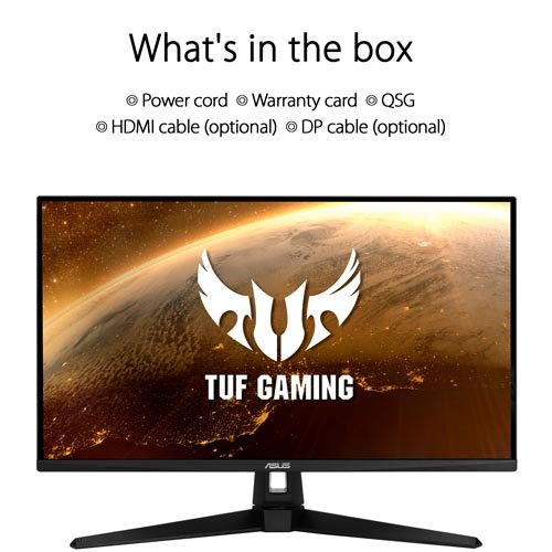 TUF Gaming VG289Q1A is a 28-inch, 4K UHD, IPS display with superior images, 90 % DCI-P3 color space designed for professional gamers.It also features FreeSync/Adaptive-Sync technology, for extremely fluid gameplay without tearing and stuttering.