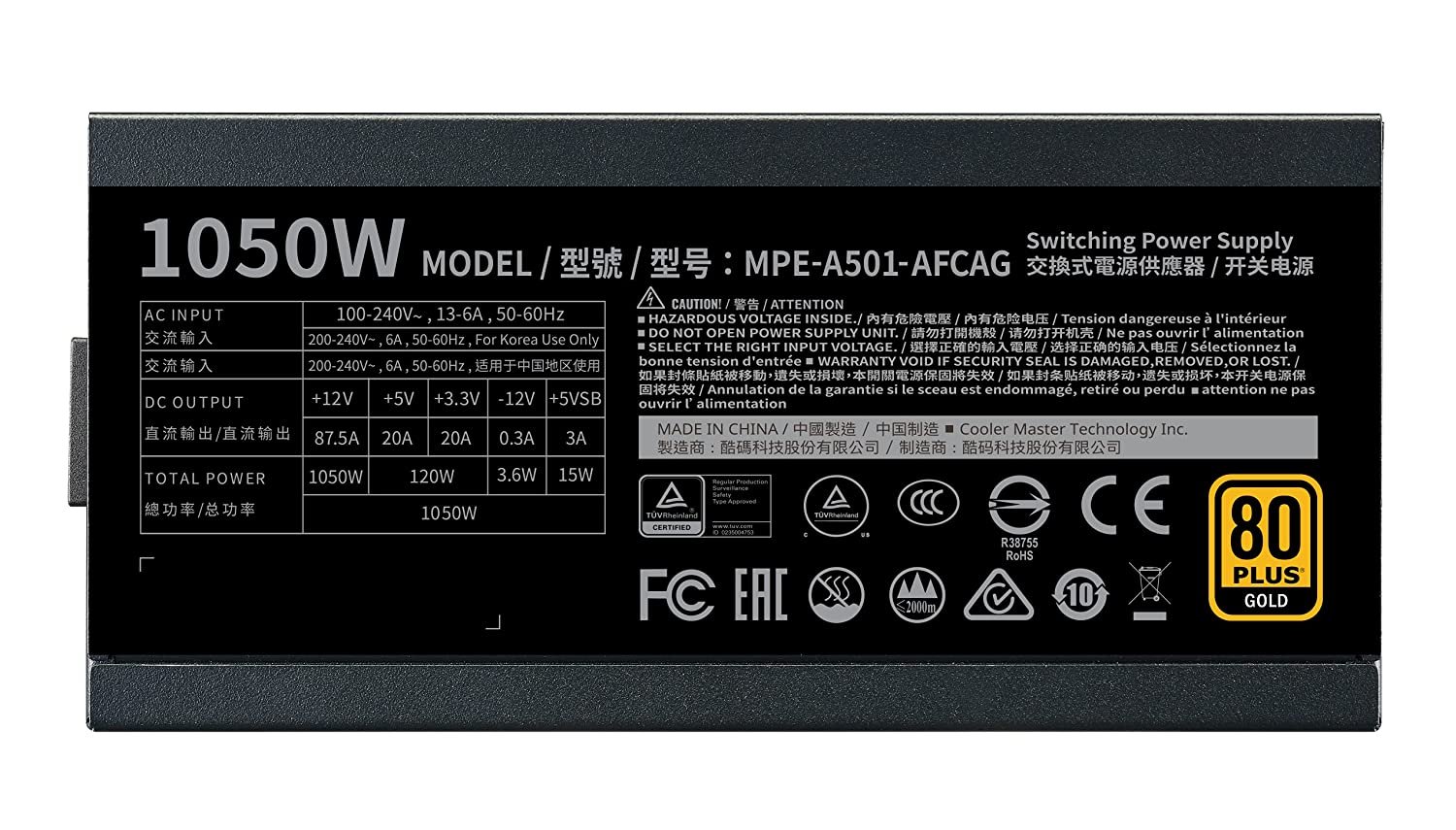 Cooler Master MWE 1050 V2 1050 Watt 80 PLUS Gold Certification Fully Modular PSU MPE-A501-AFCAG-IN