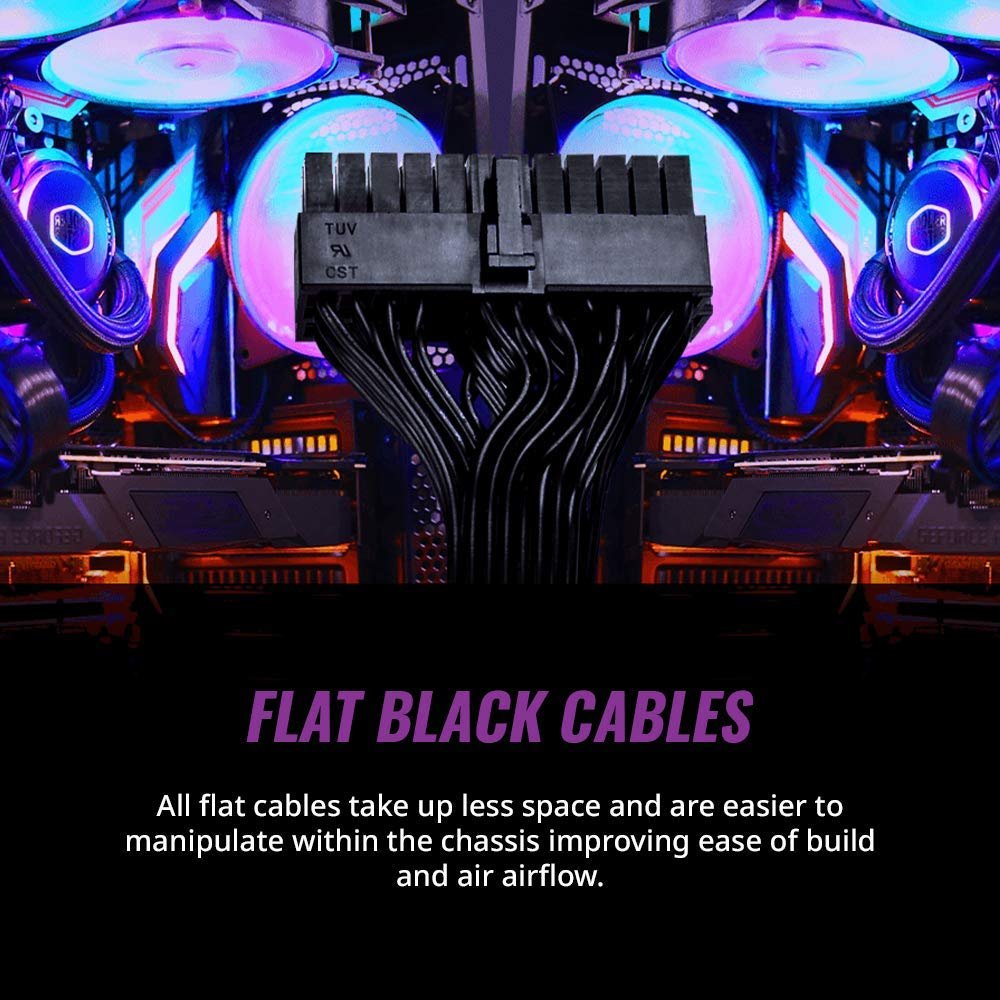For many PC Builders with aesthetics in mind, cabling can be on of the most troublesome parts of assembling a PC. Cables can be confusing, too short or too long, and they almost never look good. The MWE White uses flat and flexible black cables to help deal with these problems. These cables are more discrete and flexible, making them easier to implement into your system while taking up less space. This is especially useful for smaller cases and preserving airflow.