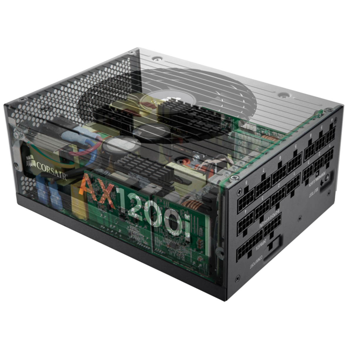 The revolutionary AX1200i is the first desktop PC power supply to use digital (DSP) control and Corsair Link to bring you an unprecedented level of monitoring and performance customization. The DSP in the AX1200i makes on-the-fly adjustments for incredibly tight voltage regulation, 80 PLUS Platinum Efficiency, and clean, stable power.