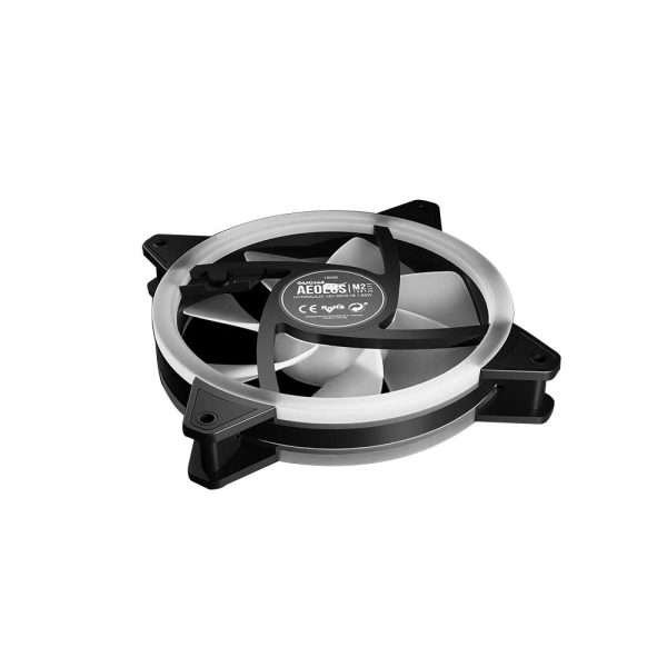 Three Times Fun The AEOLUS M2 takes a trio-loop design with three fully addressable RGB lighting rings around the front, rear and center of the fan.