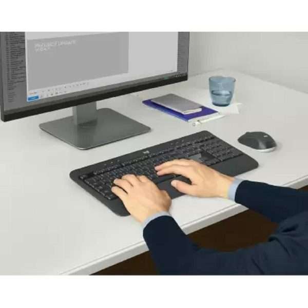 The Logitech MK540 Advanced Keyboard and Mouse Combo is an instantly familiar wireless keyboard and mouse combo built for precision, comfort, and reliability. The full-size keyboard has a familiar key shape, size, and feel and the contoured and ambidextrous mouse is designed to fit comfortably in either palm.
