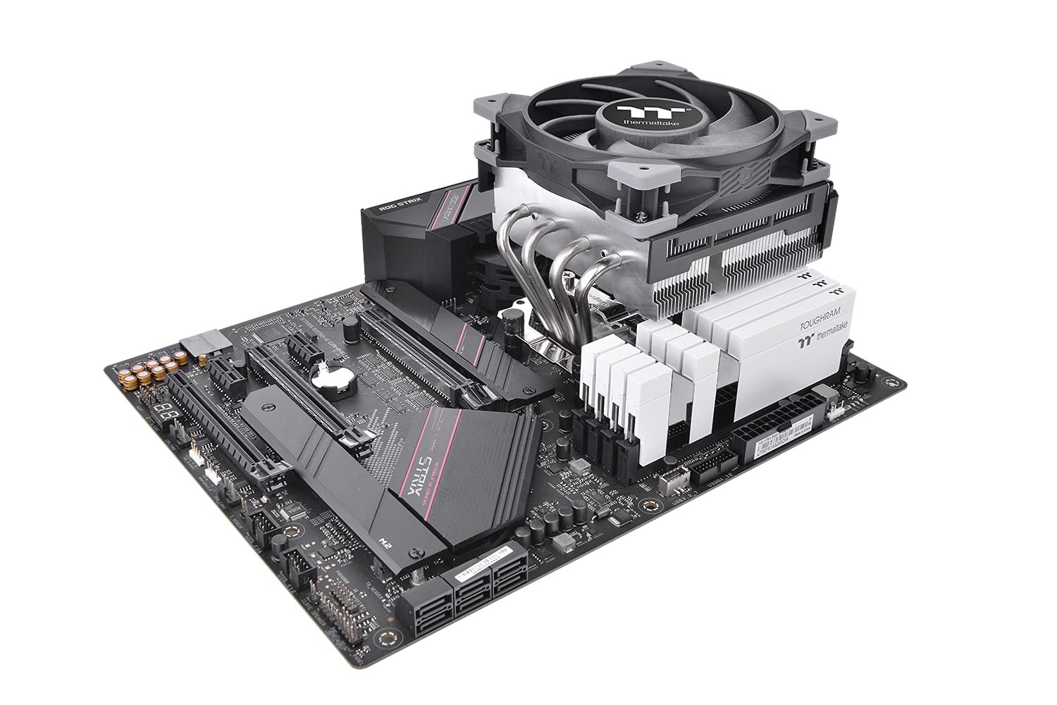 TOUGHAIR 110 is a 114 mm tall top-flow air cooler that supports up to 140 W. The top-flow design is also beneficial in cooling other components on the motherboard while cooling the CPU.